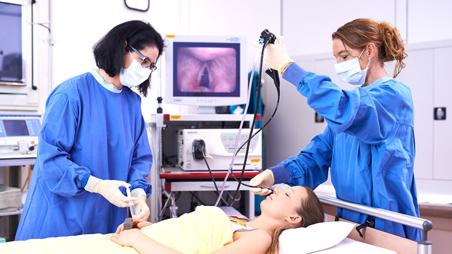 Die Bronchoskopie (Lungenspiegelung) ermöglicht die direkte Beurteilung der Atemwege von innen. Sie wird eingesetzt, um Ursachen von unklaren Lungenveränderungen, Infektionen oder Tumorverdacht gezielt abzuklären.